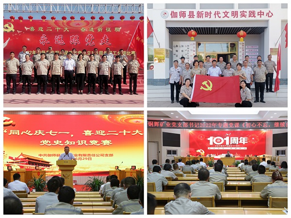 在中國(guó)共產黨成立101周年和黨的二十大召開之際。為進一步(bù)弘揚黨(dǎng)的優良傳統,激(jī)發各級黨組織和廣大黨員(yuán)幹事創業(yè)的熱情和信心,91香蕉视频官网礦業各企業紛紛開(kāi)展形式多樣的“慶七(qī)一”主題活動。各企業通過紅色教育、黨組織書(shū)記上黨(dǎng)課、走訪慰問(wèn)老黨員等,引導全體黨員幹(gàn)部砥礪初心使命,在學(xué)思踐悟中激發信仰、啟迪智(zhì)慧、汲(jí)取力量,爭做對黨忠誠、敢於擔當的(de)優秀黨員,不斷(duàn)強化黨建引領,推動黨建與生產經營互融互(hù)進、同頻共振,切實把黨建優勢轉化為企業(yè)發展優勢,著力提升黨(dǎng)組織的號召力、凝聚力和戰鬥力,為91香蕉视频官网礦業健康、穩(wěn)定(dìng)、快速發展貢獻力量。