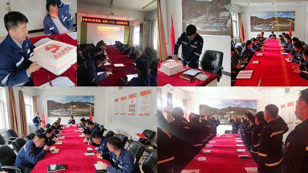 為熱(rè)烈慶祝中(zhōng)國共產黨成立101周年,回顧(gù)黨的奮鬥曆史,謳歌黨的光輝曆程,6月27日下午,早子溝金礦(kuàng)黨支部組織開展了“慶七一(yī),喜迎(yíng)黨的二十大”專題(tí)係列活動。活動中,支部書記於(yú)明海帶領全體黨員在黨旗下進行了莊嚴宣(xuān)誓,隨後做題為《喜迎二十大,奮(fèn)進新征程》的(de)黨課(kè)講解,旨(zhǐ)在激勵全體黨員奮發實幹作為,以(yǐ)實際(jì)行動詮釋一名共產黨員的責任、使命和擔當。最後全體(tǐ)黨員一同慶祝政治生(shēng)日,支部書記向全體(tǐ)黨員切發“生日蛋糕”,希望同誌們“吃甜不忘苦”,夯實工(gōng)作作風,吃苦在前、享受在後,以一往無前的奮鬥姿態和永不懈怠(dài)的精神狀態迎接二十大的勝利召開!