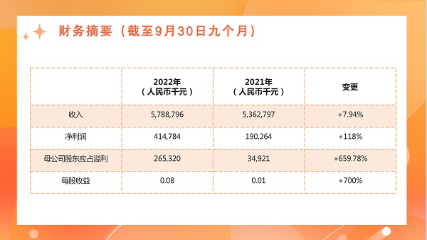 2022年10月20日(rì),招(zhāo)金礦業股份有限公(gōng)司公布截至2022年(nián)9月30日止三季度業績。前三季度,在黃金價格走低、內外部環境嚴峻複雜等多種不利因素考驗下,全公司上下錨定主業,交出了一份“大攻堅”的成績單。前三季度公司共完成礦產金產量42.14萬(wàn)盎司(約13.11噸),同比大(dà)增64%;實現淨利約人民(mín)幣4.15億元,同比(bǐ)增長約118%;歸母淨利潤約人(rén)民(mín)幣2.65億元,實現近7倍增長;每股(gǔ)收益約人民(mín)幣0.08元,比去年同期增長了700%。