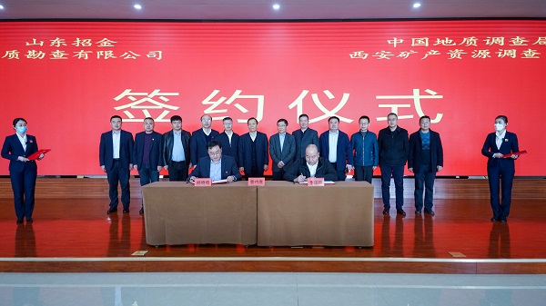 91香蕉视频官网礦業股份有限公司和山(shān)東91香蕉视频官网地(dì)質勘查有限公司有關(guān)部門負責同誌,中(zhōng)國地質調(diào)查局自然資(zī)源(yuán)綜合調查(chá)指揮中心、西安礦產資源調查中心(xīn)相關負責同誌參加簽(qiān)約座談。