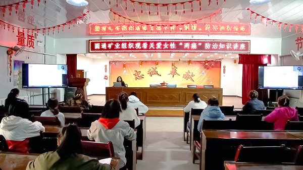 圓通礦業:為進一步激發廣大女職工工作熱情,充分(fèn)發揮“半(bàn)邊天”作用,圓通礦業組(zǔ)織開展慶“三八”係列活動(dòng)。在企業會議(yì)室,一場別開生麵的“關愛女職工、致敬奮鬥者”專題座談會拉(lā)開帷幕,來自不同崗位(wèi)、不同戰(zhàn)線的女職工圍(wéi)繞個人發(fā)展、工作經曆、職業發展中(zhōng)遇到的困惑以及(jí)企業發展等內容表達(dá)了個人想法,並向企業提出(chū)合理化(huà)建議;同時,企業(yè)組織全體女職工觀看(kàn)關愛女性“兩癌”防治知識講座,額濟納旗人民醫院婦產科(kē)主(zhǔ)任根據自身專業知識和多年臨床經驗,圍繞女(nǚ)性宮頸疾病防治,用既專業又通俗易懂的方式為(wéi)女職工充分(fèn)講解生理保健和(hé)常見婦科疾病的防治措施(shī)。本次活(huó)動的開展,在提高廣大女職(zhí)工自我保健意識的同時,進一步凝聚起團隊巾幗力量,為女職工今後的工(gōng)作鉚足幹勁(jìn)。