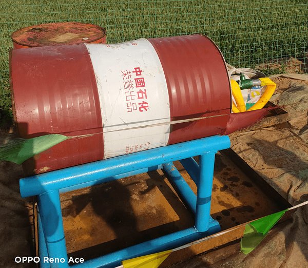 加油桶改造。在(zài)地表鑽機施工過程中,各類設備加注液(yè)壓油時,常常需要兩到三名工人合力將液壓油倒入加油桶內,再(zài)加入設備油箱(xiāng),過程不僅(jǐn)費時費力,且易造成液(yè)壓油的浪費,也(yě)不能保證(zhèng)液壓(yā)油純度。機動設備部(bù)組織人員對油桶進行改造升級,利用廢舊鑽杆(gǎn)加工油桶支架,將油桶橫放,在(zài)油桶出油口處(chù)加裝一個(gè)球閥並(bìng)連接上油管,需要加油時隻需將球閥打開即可。通過改造,既省時省力,也避免了加油時雜質進入油箱,保證(zhèng)了液(yè)壓油的純度,提高了設(shè)備的運(yùn)轉率,同時(shí)減少(shǎo)了加油過程中不必要的浪費(fèi),大大節約了機台(tái)生產成本(běn)。