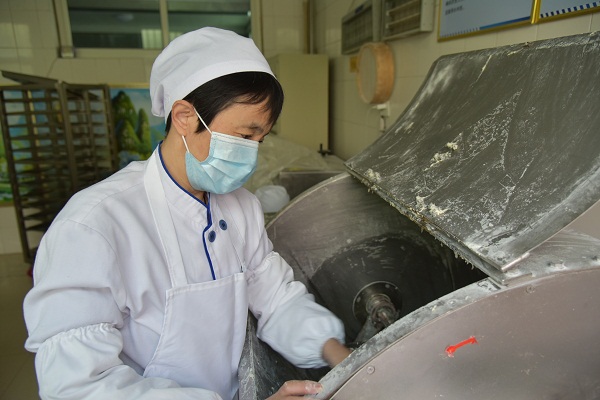 留礦職工每天(tiān)三頓都要食堂供應(yīng),就餐人數從原來的(de)日均600人次徒然增加到近1500人次。食堂每天要準備1500多(duō)份各色花樣的麵點,時間緊、任務(wù)重。為保證職(zhí)工的飲食供應,李曉梅同食堂職工加(jiā)班加點,淩晨兩三點就起(qǐ)床(chuáng)馬不停蹄地連軸轉到下午五六點鍾。麵案是個體(tǐ)力活,從淩晨兩點(diǎn)發麵、揉麵、售飯,每天(tiān)至少要(yào)站八九個小時,一天(tiān)下來累的腰酸腿疼、胳(gē)膊都抬不起來,晚上睡覺的時候,舍友震(zhèn)驚得發現她的後(hòu)背和胳膊(bó)全部貼滿了膏藥,就是這貼滿膏(gāo)藥的後背(bèi)與胳膊卻扛起了全礦職工(gōng)的生活保障。