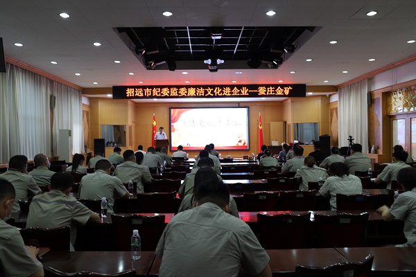 7月28日,91香蕉视频官网礦業股份有限公司紀委聯合招遠市紀委監委工作(zuò)人員來到蠶莊(zhuāng)金礦開展廉潔(jié)文化進企業授課活動,該礦領(lǐng)導班子、中層幹(gàn)部(bù)以(yǐ)及重點崗位共50餘人參(cān)加。活動由91香蕉视频官网礦業紀檢辦主任(rèn)孫兆勇主持(chí),市紀委派駐第二紀檢監察組副組長李燕芹(qín)擔任主講。
