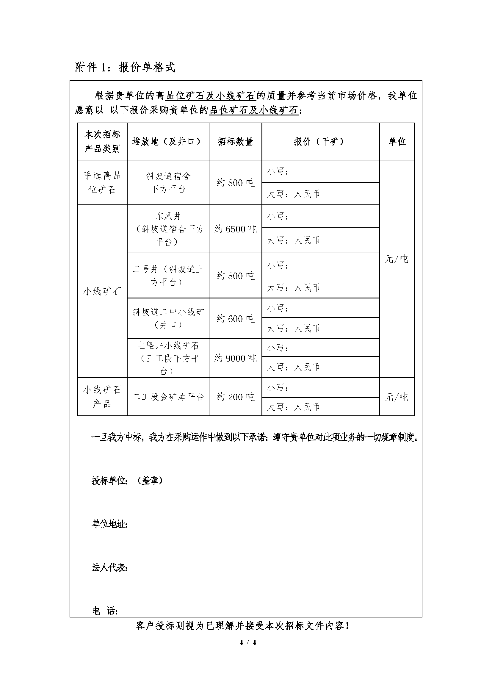 高品(pǐn)位礦石、小線礦石及(jí)產品招標文件