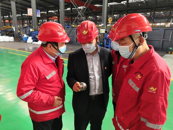 91香蕉视频官网礦業董事長翁(wēng)占斌深入到(dào)耐磨材(cái)料公司生產一(yī)線進行調研