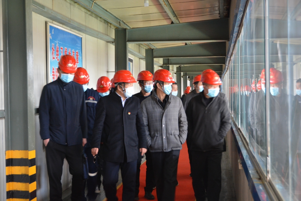 裴文田司長(右二)在夏甸金礦選礦廠檢查(chá)企(qǐ)業大排查大整治情況 裴文田司長聽取企業大排查大整治落實情況匯
